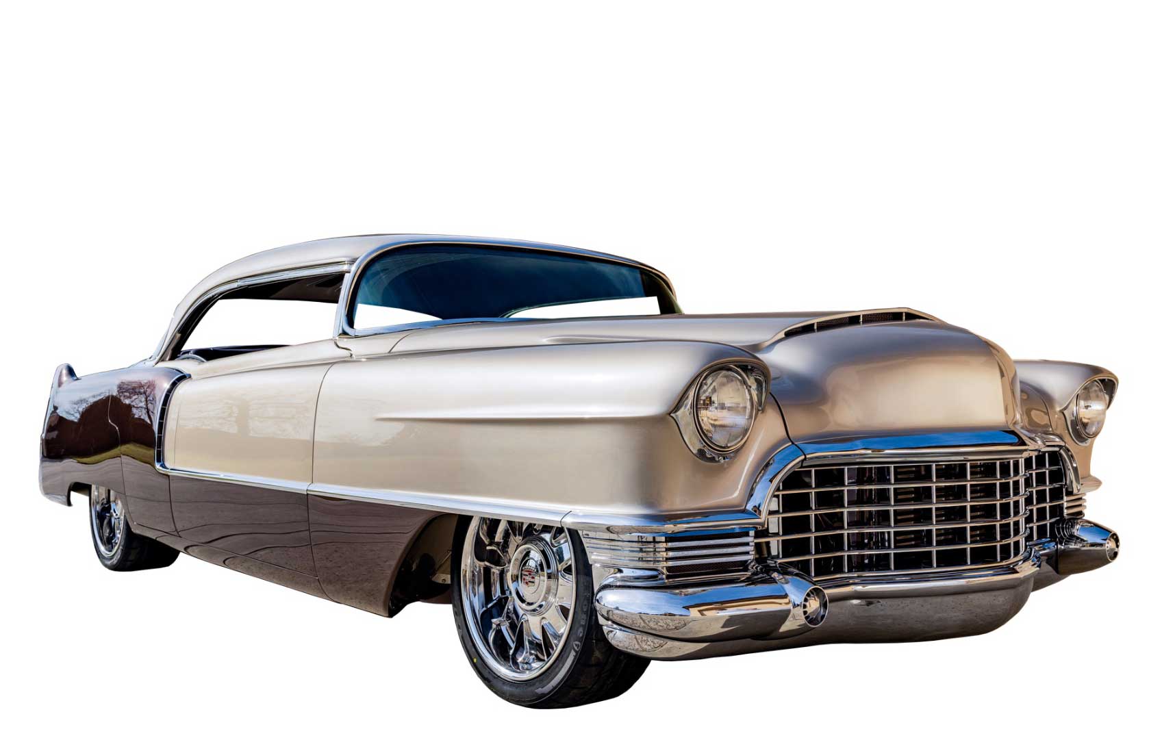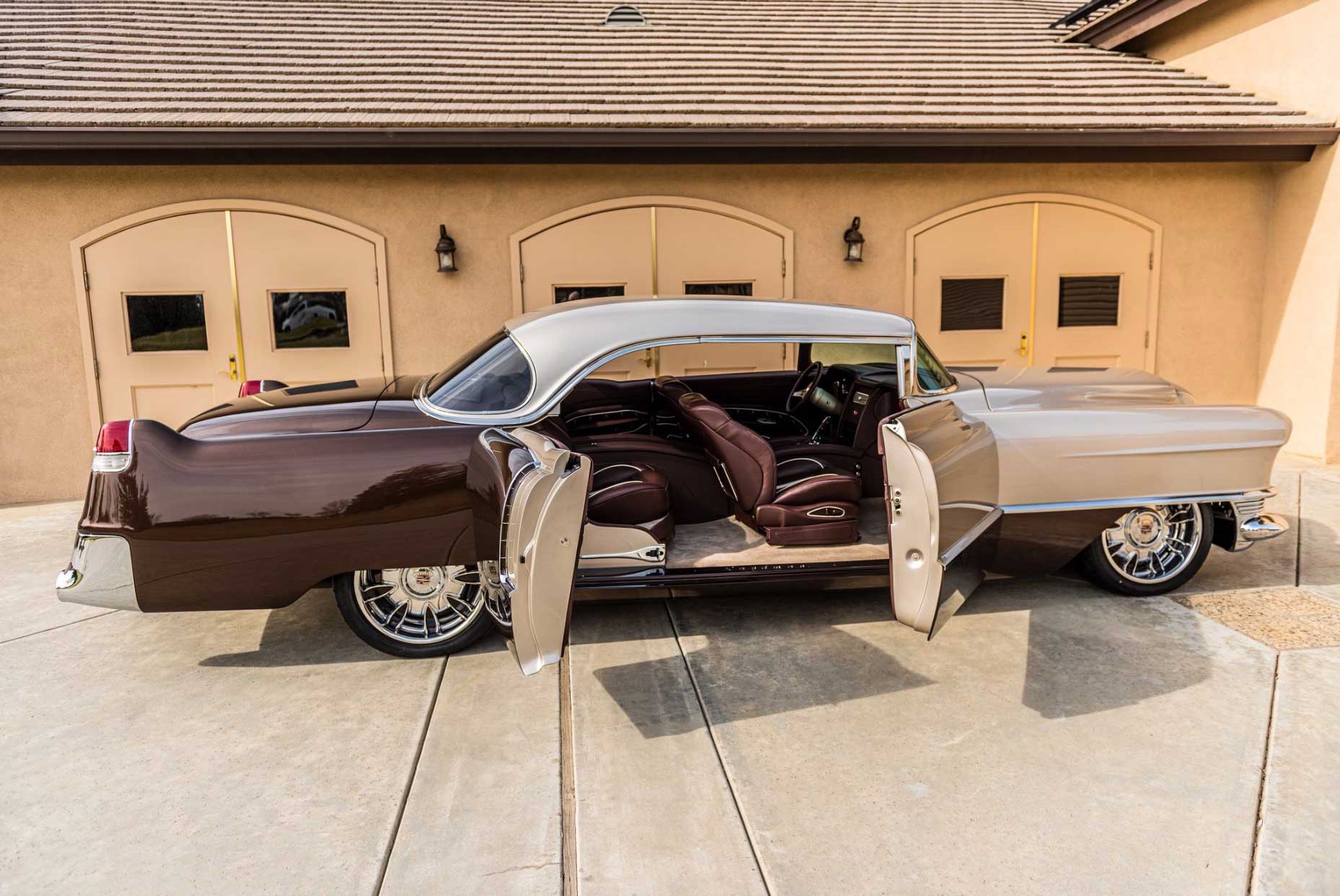 Iconic Speed and Design’s complete custom restoration of a 1955 Cadillac Coupe DeVille, two-door turned four-door suicide. This nine-year build debuted at the Detroit Auto Rama contending for the Don Riddler award in 2019 and made this select six at the World of the Wheels.