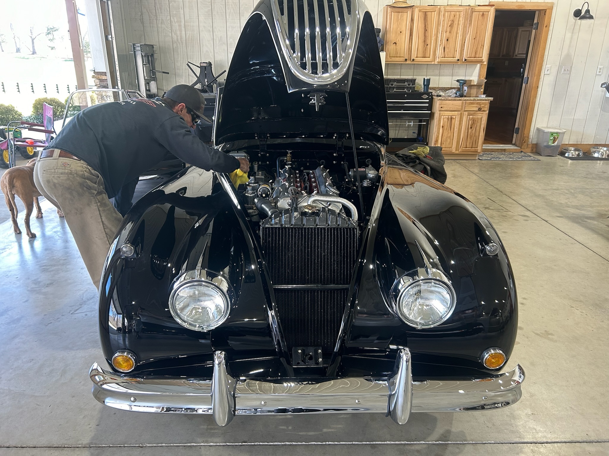 This Jaguar XK 140 is an automatic, only seven were ever built. This one of four that are still in rotation.
